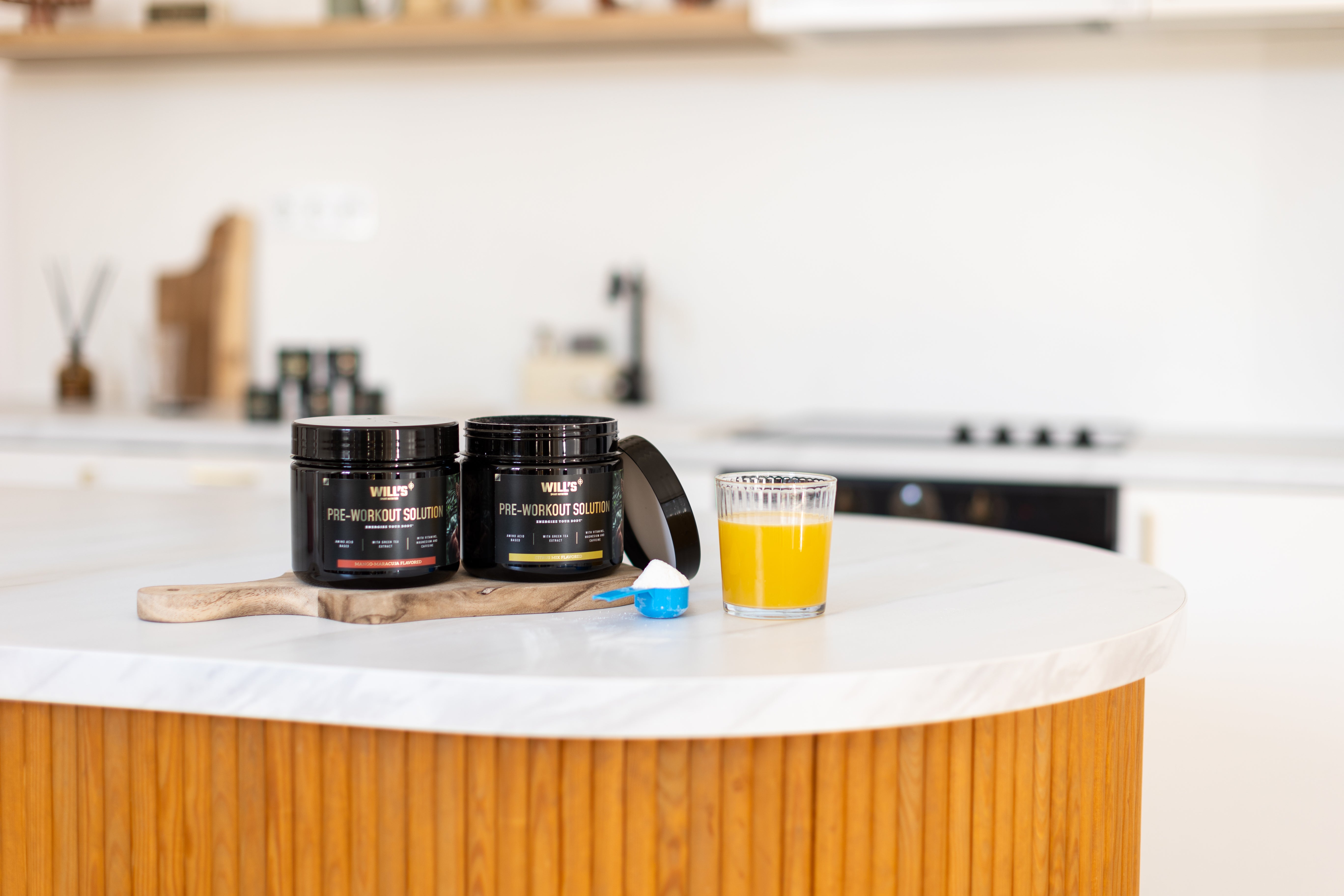 Pre-workout drink powder with caffeine, citrulline, and creatine.